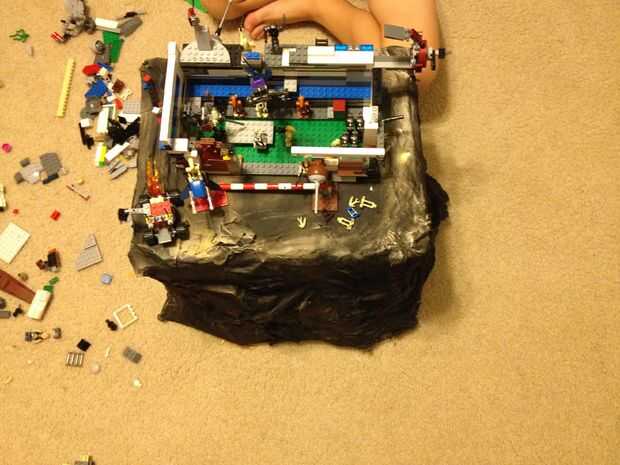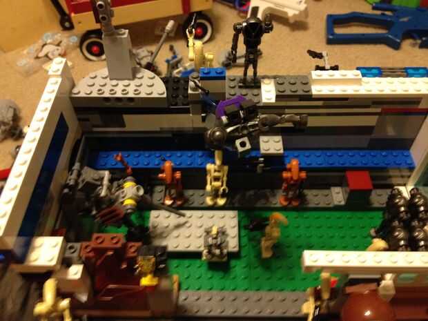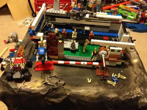 Él construyó una mesa y coloca 1/2 un droide de batalla en la mesa con los brazos y todo el equipo del montaje mecánico. Construyó, con ayuda de su hermana de 6 año de edad, varios droides de batalla completamente montado en la esquina. Luego vinieron las estaciones y las defensas de la pistola.