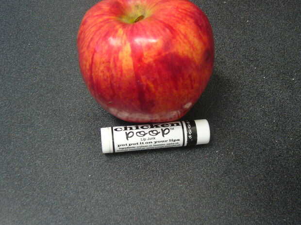 Ahora, caca de pollo no viene de la parte trasera de cualquier ave de corral. Es realmente una marca similar a chap stick que utiliza aceite de soja entre otras cosas. Técnicamente, es comestible labio"basura." Así que untar sobre tu positivo y frotarla.