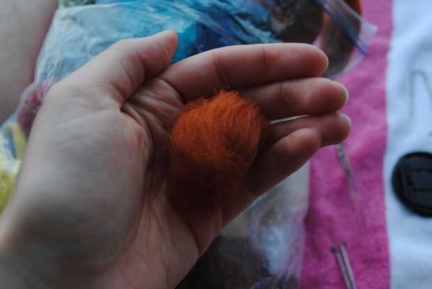Recoger una pequeña cantidad de lana merino y forma una bola floja con las manos. Comience con una aguja de fieltrar tamaño 38 y meter en el baile en múltiples áreas, manteniendo constantemente la rotación de la bola para que un punto no asomó en demasiado. Una vez que la bola está sosteniendo es forma y movimiento más denso, pero todavía blanda, hasta una aguja de tamaño 40, que será más rápida que una bola densa.