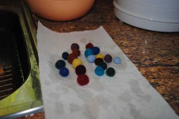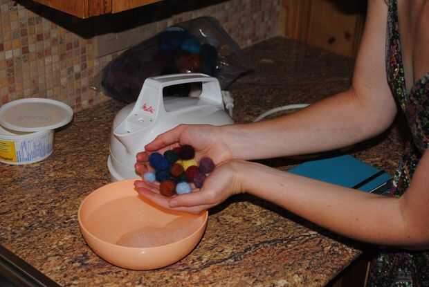 Una vez que tenga un número de bolas secas de fieltro, es hora de mojar el fieltro.