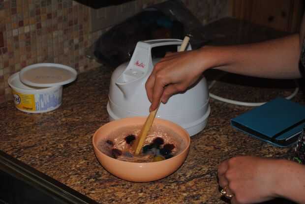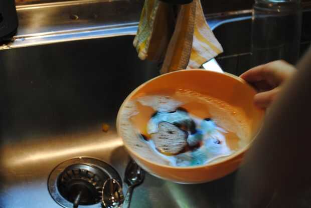 Hervir un recipiente lleno de agua y vierta en un recipiente con sobre el valor de una moneda de diez centavos de jabón regular. Añadir las bolas seco y revolver con una cuchara.