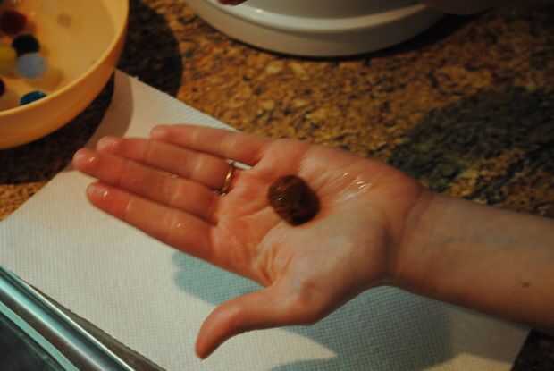 Una vez han enfriado lo suficiente como para tocar, frotar en movimientos de círculo. Usted sentirá la bola consigue más pequeño y más denso. Asegúrese de que la bola mantiene su forma. Continuar haciendo esto hasta que cada bola es bastante denso, sobre 2-3minutes por bola.