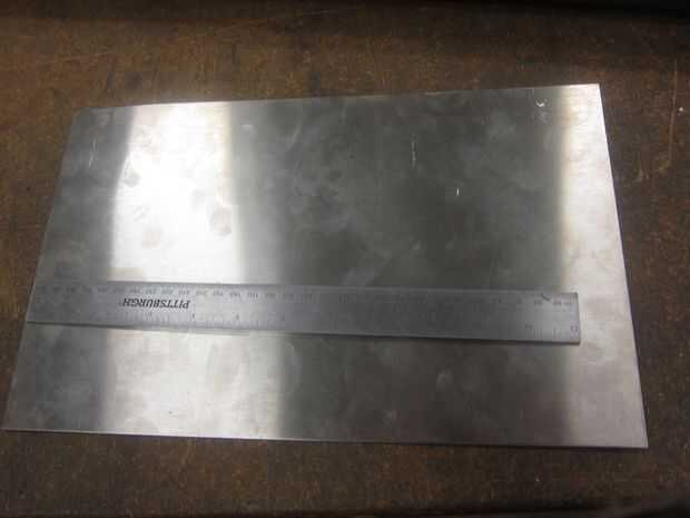 Cortar una hoja de acero inoxidable de 9,7"(3" * π más suficiente solape para el anillo a permanecer juntos) de largo, luego cortar la otra forma en tiras de 1.5".  Usé una hidráulica pura.