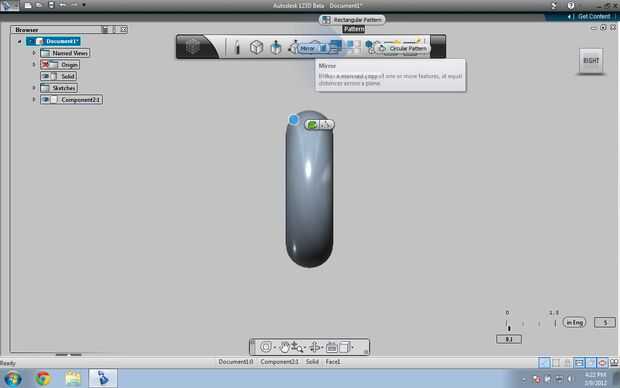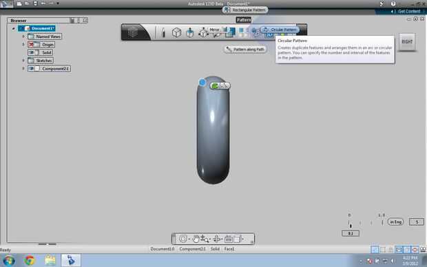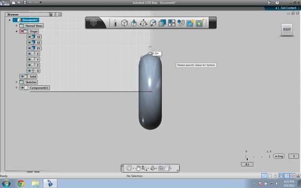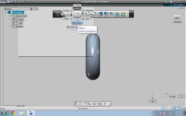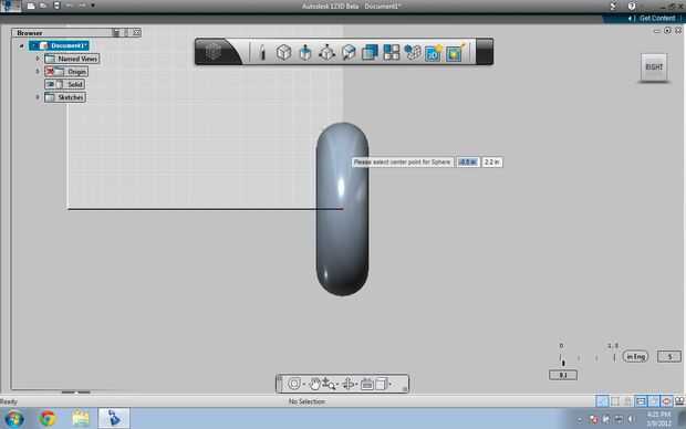 A continuación, elija "esfera" en el menú de primitivas (al lado del lápiz en la barra de herramientas). Elegir -0.5 ", 2.2" como el centro y 0,15" como el radio.
