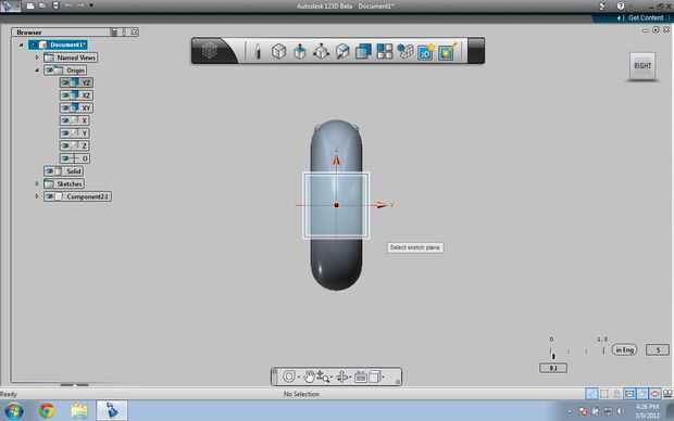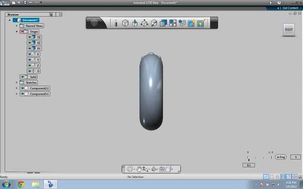 Iniciar un dibujo nuevo y seleccione de nuevo el plano YZ. Elija "esfera" en el menú de primitivas. Dibujar una esfera en 0.0", 2.4" con radio 0,20"
