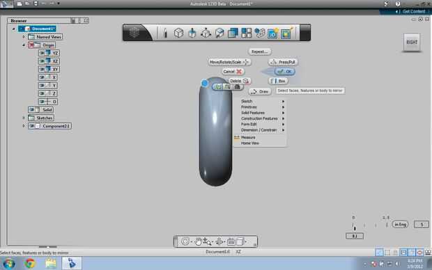 Ahora seleccionar la esfera que marcó y seleccione "espejo" en el icono de dibujo en la barra de herramientas (cuatro cuadrados, uno azul). Continuación, seleccione el widget 2 º elegir el plano de espejo. Ampliar la visión del origen del árbol del explorador de izquierda superior y seleccionar el plano XZ. Haga clic derecho y seleccione Aceptar. Ahora debe tener dos esfera (véase el acompañamiento de imágenes).