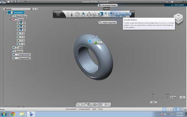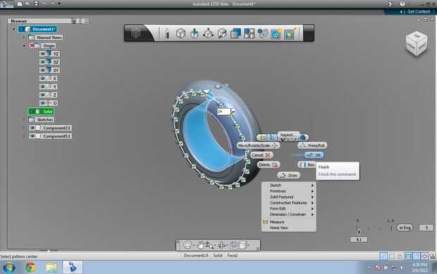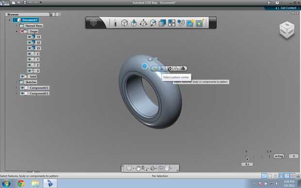 Ahora, seleccione la esfera grande. Elija "circular pattern" en el menú de patrones. Haga clic en el artículo 2 º en la barra de herramientas emergente "Seleccione el patrón centro. Haga clic en el cilindro interno. 48 el tipo en el cuadro que aparece. Haga clic derecho y seleccione Aceptar.
