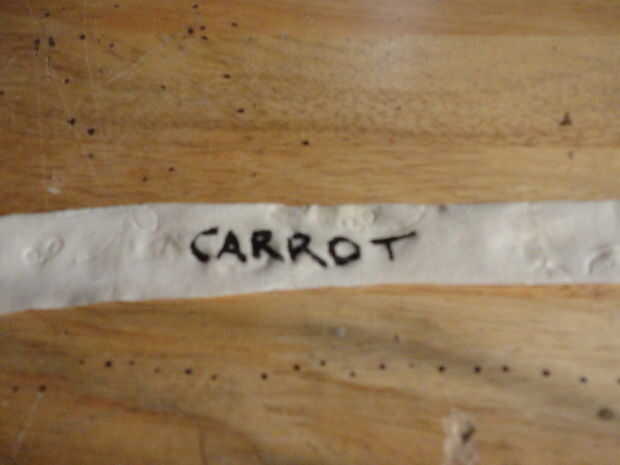 Escriba sobre el tejido lo que son las semillas. Para no olvidar o mezclarlas. Colgar la cinta de secado.