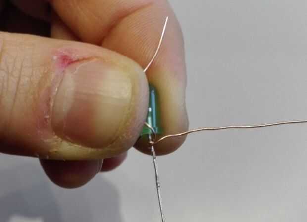 El más corto perno el negativo. Conectar a un lado de la resistencia y utilizarlo para crear un puente con el tornillo que va a representar el lado negativo de la base. No necesita cable de cobre para este lado del módulo.