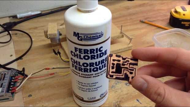 Grabado de cloruro férrico remueve el cobre a través de reacciones químicas. Cuando el cobre se introdujo a la solución de cloruro férrico, se disuelve el cobre. La manera en que esto sucede es largo y complicado, así que lo que no escribo aquí. También se formará precipitado como resultado de estas reacciones, que contiene hierro y cobre.