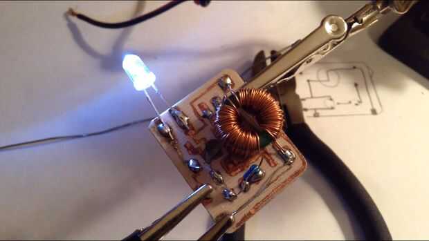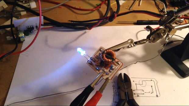 El circuito del ladrón de joule funciona perfectamente! Funciona el LED por lo menos.47 voltios. Como se puede ver en la imagen de osciloscopio por encima, el circuito oscila uniformemente. Este circuito funciona y se ve profesional en esta placa de circuito impreso.