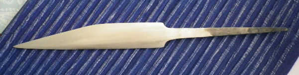 La hoja se ha limpiado para arriba, marcas de martillo quitar y cartabones conjunto. Los cartabones en esta hoja se mezclaron en el cuerpo de la navaja. Una transición grave hubiera hecho la hoja aspecto "moderno" que no es la idea detrás de este proyecto.