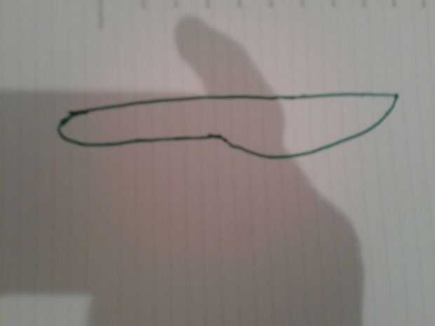 Este cuchillo estaba hecha de acero al carbono 1075 con una manija de burl coolabah.Paso 1: corte Encontré un diseño que me ha gustado y puño copiarla en algún cartón para obtener la sensación del cuchillo. Después de hice algunos pequeños ajustes en