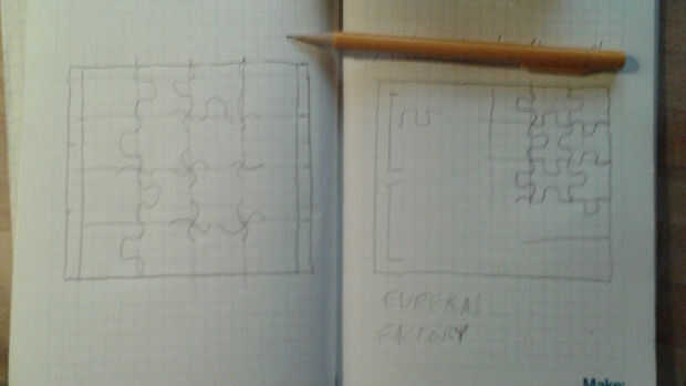 Empecé dividiendo el largo camino de rodillos en cuatro secciones. Dividí las secciones en cuatro secciones en la otra dirección, creación de 16 plazas. En primer lugar, marcado donde se intersectan las líneas. Me aseguré de alternar la dirección curva de cada cruz. Luego marqué a las protuberancias y agujeros que las piezas se traben. Finalmente, fui el patrón entero para asegurarse de que todas las curvas fueron suaves. Dibujando el patrón en pasos ayuda a asegurar que el patrón es uniforme.