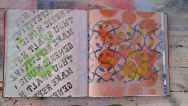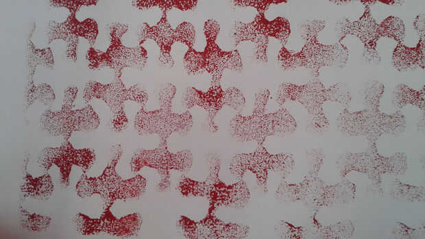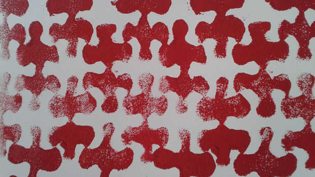 Usé algunos izquierda sobre pintura roja para probar el rodillo. Da un efecto similar a la pintura de la esponja. Las piezas pueden ser mano de color para obtener patrones multicolores. Variando la presión que usas cuando rollo también dará resultados diferentes.