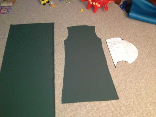 Para la túnica, he doblado los tela derecho lados juntos y usa una camisa sin mangas como un patrón. Que solo poner la camisa sobre la tela y trazada alrededor del brazo, hombros y cuello - dejando un extra 1/2" todo. En la línea de cintura de la camisa, seguí marcando hacia abajo de la tela para aproximar la longitud de la rodilla, disminuyendo hacia fuera ligeramente a los bordes de la tela. Corte la forma y cubrió las dos piezas juntas hacia los lados a las aperturas del brazo y entonces a través de los hombros al cuello de la abertura. Les cosí juntos en la máquina de coser con una puntada recta. Para los agujeros del brazo y abertura del cuello, doblé ~1/2 "encima y utilizado un zig zag puntada para terminar las aberturas. Una vez completado, me resultó la derecha de la túnica y lo probé. Dobla la parte inferior hasta la altura adecuada y me lo cubrió. I corte el exceso y doblar 1/2" para el interior y coser un dobladillo con una puntada de zig zag.