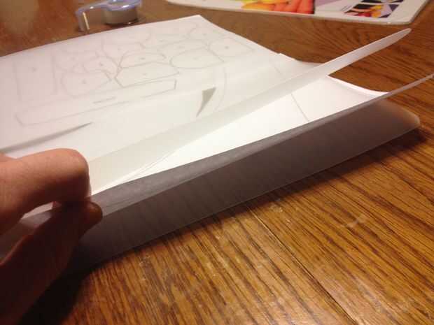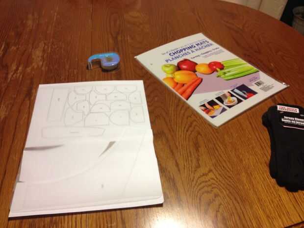 Los tapetes de corte eran translúcidos así que puse las plantillas entre las hojas de dos corte y pegadas todas las piezas juntas. Entonces era capaz de cortar todas las piezas para ambas manos al mismo tiempo.