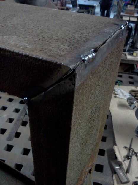 Con todo lo que se celebra en el lugar correcto con soldadura de tachuela, era hora de cometer con cordones de soldadura completo por todas las costuras.