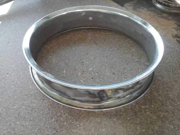Empecé partiendo de un borde hacia abajo de la media y la mano doblando algunos acero de 16 calibre (1,6 mm) para ajustar la curva, entonces era sólo una cuestión de soldadura las tres piezas de nuevo juntos. Ir poco a poco este y de uso de soldadura de tachuela, si algo parece fuera de lugar, corte las tachuelas cerca de él y solucionar el problema, no sólo mantener y esperamos que arreglará a sí mismo.
