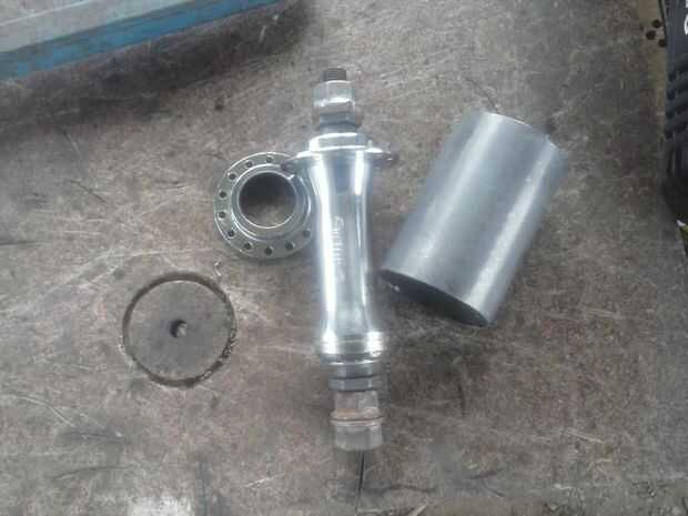 Una ventaja de esto sobre el método de llanta de coche es que se puede utilizar un cubo ancho estándar, no es necesario extenderlo como hub es todavía más ancho que el borde de la misma.