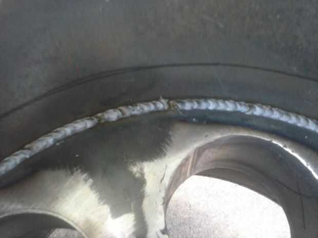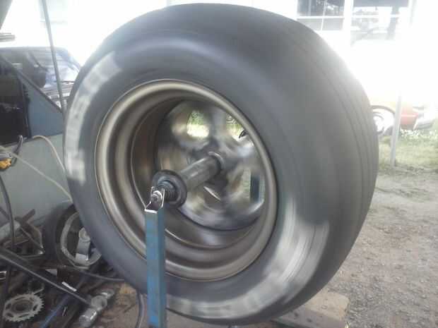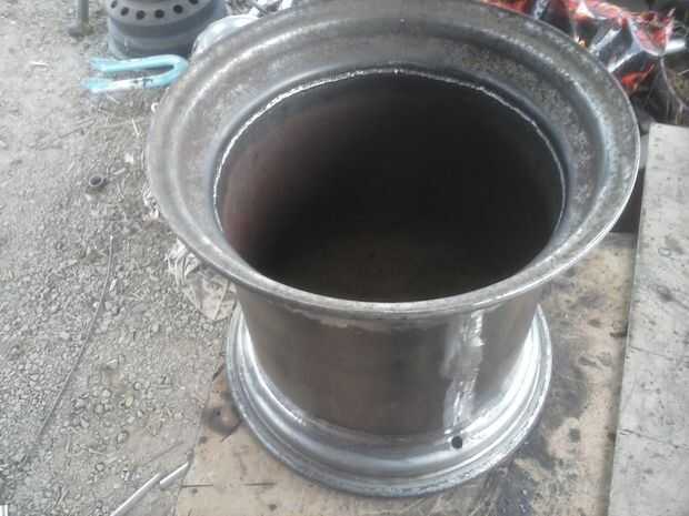La rueda trasera de esta moto era un poco diferente aunque, tengo la mano de un neumático usado de minisprint suciedad Hoosier que quería usar, pero requiere un borde 13x11.5, así que encontré un 13 x 4, 5 aro y tenía algunos 1/8"(3 mm) para adaptarse a la placa de acero. El método es básicamente igual a ensanchar la rueda delantera como se indica antes.