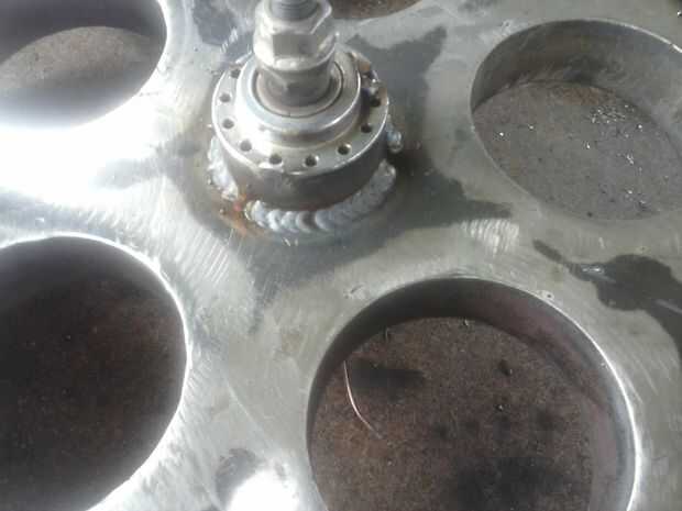 A partir de ahí fue sólo una cuestión de virar para el eje posterior y el centro y dándole una vuelta para comprobarlo era recto, una vez que se hizo sólo soldado con autógena lo para arriba!
