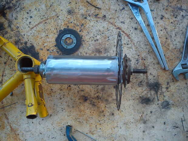 Mi eje en este punto tiene el disco de freno y embrague instalado en un lado, mostrando apenas un poco...