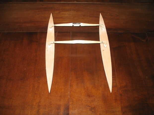 Los estabilizadores de trimarán tiene vigas laterales, cual puede ser tamaño al nivel conocido de casco principal y línea de flotación y pegado de los estabilizadores. Usted puede hacer un medidor para esto, pero también puede caber el casco principal para el ajuste de los niveles de realidad y perpendiculaires.