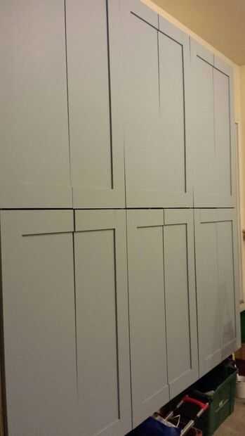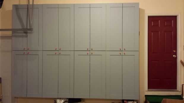 Después de pintura todas las puertas (casi un galón completo de pintura se utiliza en este proyecto), colgar las puertas en y añadir las perillas de la puerta a la preferencia - chicas seleccionadas el color de los pomos, que añade un acento muy agradable de color de fondo azul grisáceo.