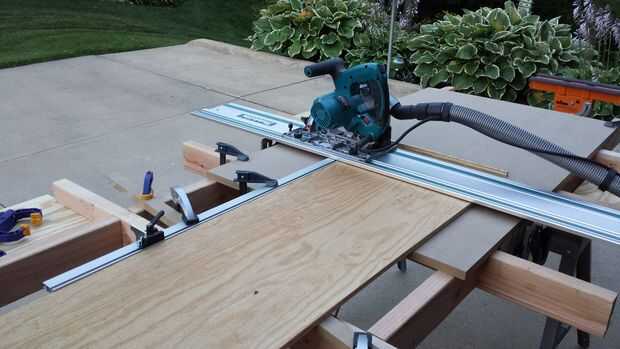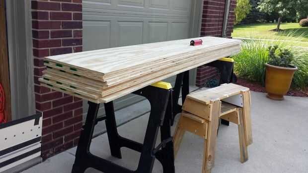 (5) hojas de madera contrachapada de 1/2" se utilizará para la canal armario y estantes. Esto es una gran oportunidad para establecer la última mesa de corte de madera contrachapada de la madera contrachapada de proceso.