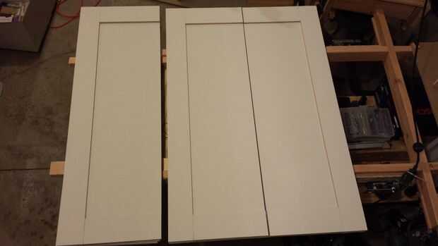 16 puertas es un gran trabajo, pero sólo puede ir tan rápido, muy pronto estamos fuera las pinzas... Y ahora que entendemos que las puertas de la razón siempre cuestan más que los gabinetes en la tienda, hay mucho trabajo involucrado en las puertas.