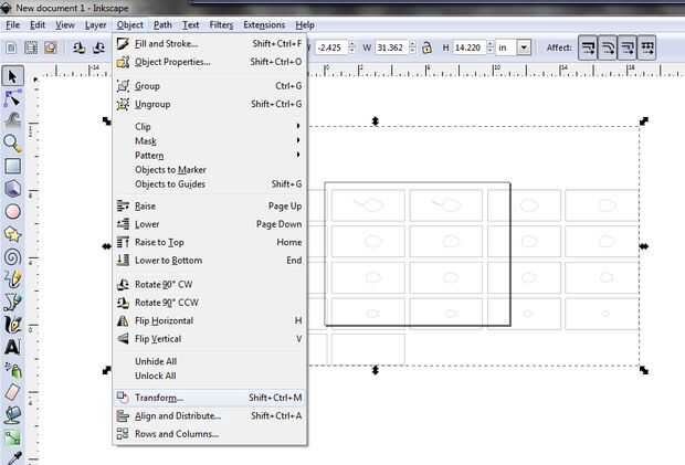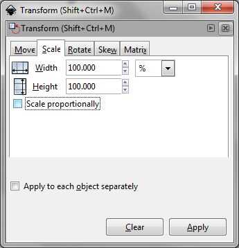 En el menú objeto , seleccione transformar para sacar el cuadro de diálogo transformar. Seleccione la ficha escala y establecer los valores de anchura y altura a su Factor de escala y pulse aplicar.