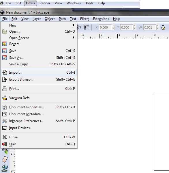Si no abre el archivo SVG directamente, seleccione importar en el menú archivo para importar el archivo SVG.