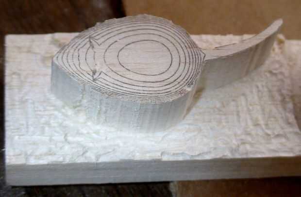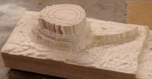 Para el primer corte, se establece la profundidad de la broca de corte en la capa más baja . Se iniciará cortando el contorno exterior . Asegúrese de tener cuidado al cortar, la broca puede tomar parte en momentos difíciles y gubia en su parte. Trabajar con la parte para obtener cortes precisos requiere práctica y paciencia.