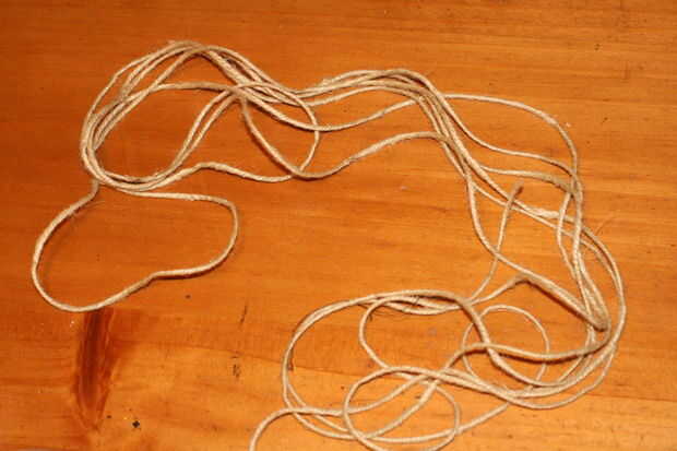 • Corte las cadenas largas de hilo, lo suficiente para circundar el frasco varias veces.