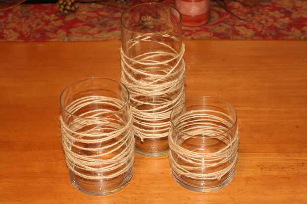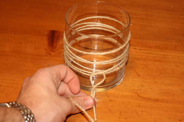 • Envuelva el hilo alrededor de la jarra; Asegúrese de dejar abierta para atar apagado en el final del comienzo. Ser creativo, usar diferentes patrones para hacer cada frasco su propio, o hacer una colección de los mismos.
