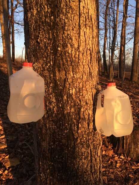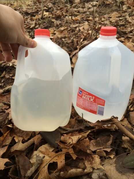 Después de que ha dejado la carrera sap recogerlo cuando los puestos de trabajo están llenos. Si el sap está bien entonces se debe revisarse una vez al día. El sap debe buscar un ligero color amarillento y sabor como agua azucarada. En la foto de arriba Observe la comparación entre sap y el agua. La jarra de la izquierda es sap la jarra derecha es agua. Antes de empezar su primer lote de jarabe Asegúrese de tener al menos un 5 galones de savia que se reducen, tanto que producirá 1 pinta de jarabe de