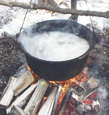 Procede a hervir la savia. Este proceso puede tomar hasta 12 horas. Si son como yo aunque y sólo salir con un galón y medio de jarabe, tarda 7 horas. La temperatura pico. de la savia debe ser 7 grados por encima del punto de ebullición, 100 grados C. y 212 grados F. no dejes que el sap a hervir hasta menos de 1 pulgada o se quemará.