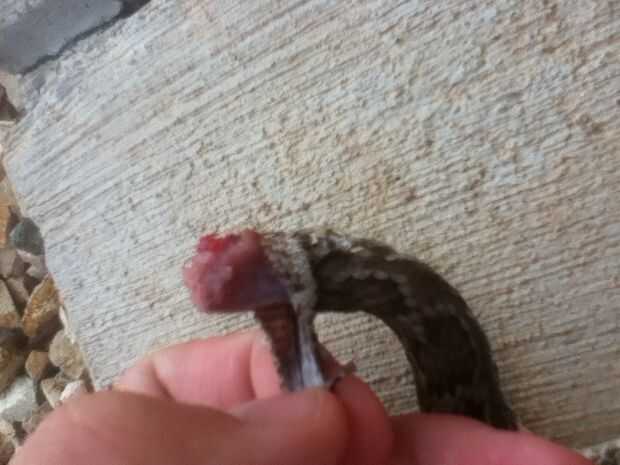 en el cuello donde cortan la cabeza mira de cerca, se puede ver donde se encuentra la piel y la carne. ahora en la parte posterior de la serpiente, no el lado del vientre, la piel se une con un asimiento de membrana sobre la piel con una mano y sostener la columna vertebral con el otro y empezar tirando, tenga cuidado para mantener su mano con la piel cerca del cuerpo donde es pelar, para no rasgar la piel. Esto debe ser un proceso largo así no creo que está haciendo mal si toma un lil mientras