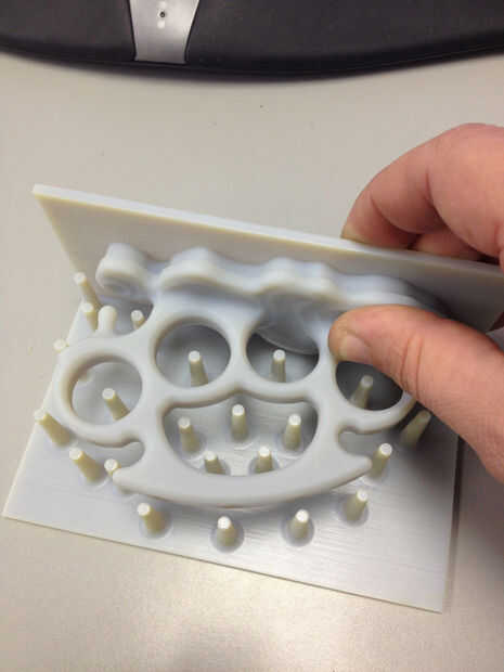 Los nudillos fusión fueron fijados a la pared del molde y picos cónicos apoyo fueron diseñados para llegar a mitad de camino el molde y llegar a un nivel justo por debajo de donde quería que mi línea de partición a ser.