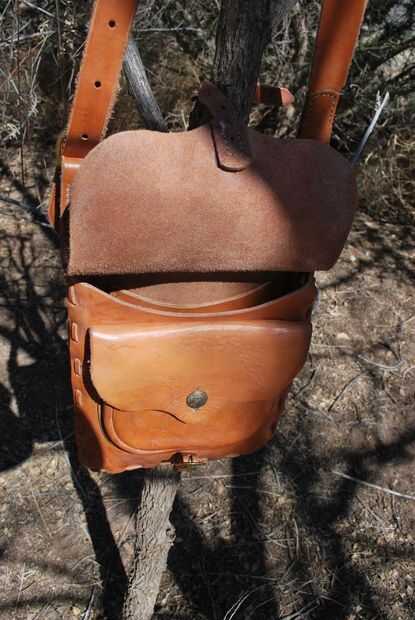 Después de un poco de uso, toda la bolsa se frota hacia abajo con varias capas de engrasado (un tratamiento de cera de abejas y aceite) y llena de essentials.