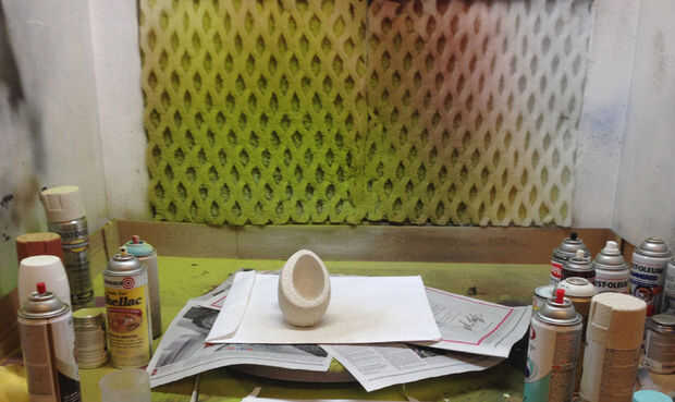 usé una vieja espuma de poliestireno más fresco, 2 cráneos de espuma de poliestireno de Michael, un medallón de madera sol (también de Michael), cosas grandes, ampliar la espuma, pintura de piedra blanca y negra spraypaint. Había pegado los cráneos c
