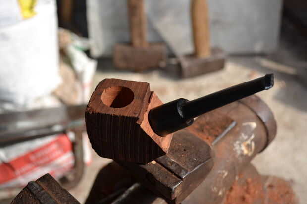 Después de inserta el vástago (también requiere algunos presentación menor, para encajar en la madera) puede comenzar el proceso de lijado.