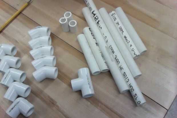se reúnen materiales que son 2 conectores de 45 grados, 1 conector de 90 grados y 12 en tubo de pvcPaso 1: Corte pulgadas dos 1 piezas del pie del pvc y divide las restantes 10 pulgadas por la mitad. Que le da dos de 1 pulgada y dos 5 pulgadas piezas