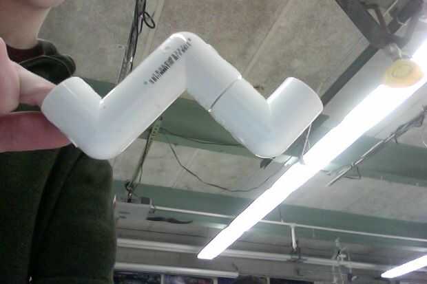 se reúnen materiales que son 2 conectores de 45 grados, 1 conector de 90 grados y 12 en tubo de pvcPaso 1: Corte pulgadas dos 1 piezas del pie del pvc y divide las restantes 10 pulgadas por la mitad. Que le da dos de 1 pulgada y dos 5 pulgadas piezas