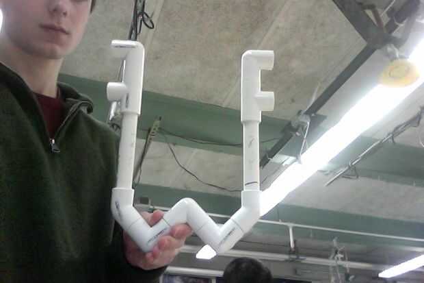 va a crear dos carta una V y P de tubería de PVC y accesorios. Las letras no pueden exceder 24 pulgadas por 24 pulgadas.Los accesorios se puede utilizar:codos de 90 gradosconexiones de 45 gradossalidas laterales de 90 gradosUniones en TTubo de PVCPas