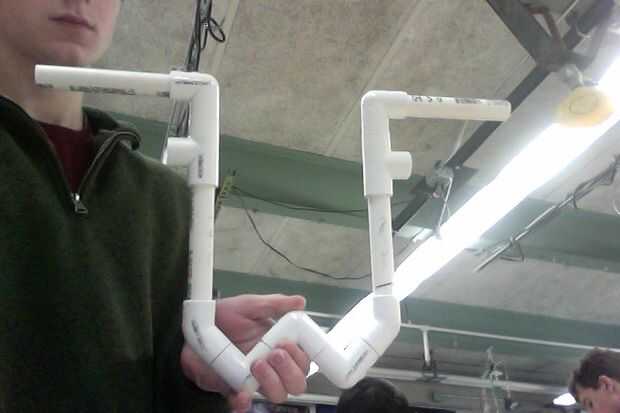 va a crear dos carta una V y P de tubería de PVC y accesorios. Las letras no pueden exceder 24 pulgadas por 24 pulgadas.Los accesorios se puede utilizar:codos de 90 gradosconexiones de 45 gradossalidas laterales de 90 gradosUniones en TTubo de PVCPas