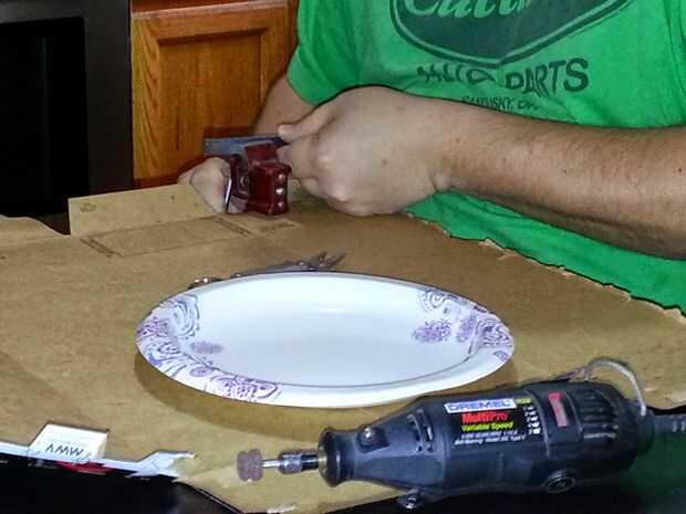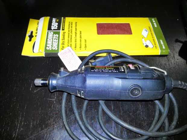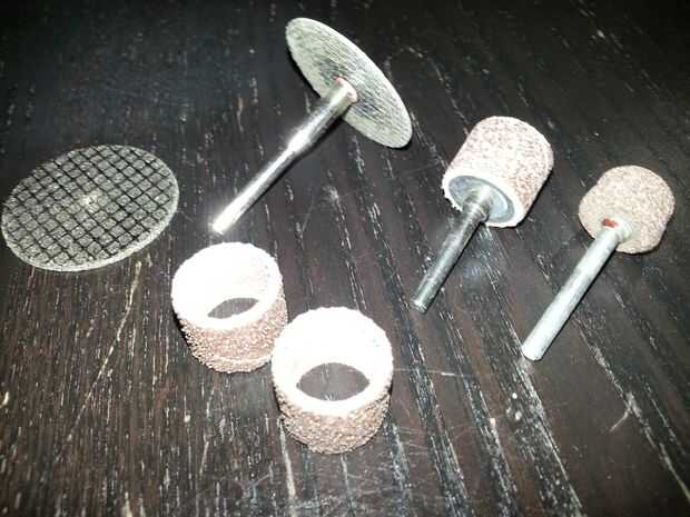 Dremel herramienta rotatoria con corte discos, discos de lija y el rojo (óxido de aluminio) tambor de pulido.