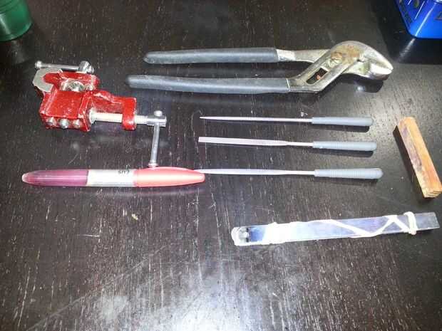 una larga manija par de alicates o (preferiblemente) apretones de vice