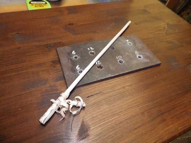 Pasador acabado después de lijar y giro en el taladro.